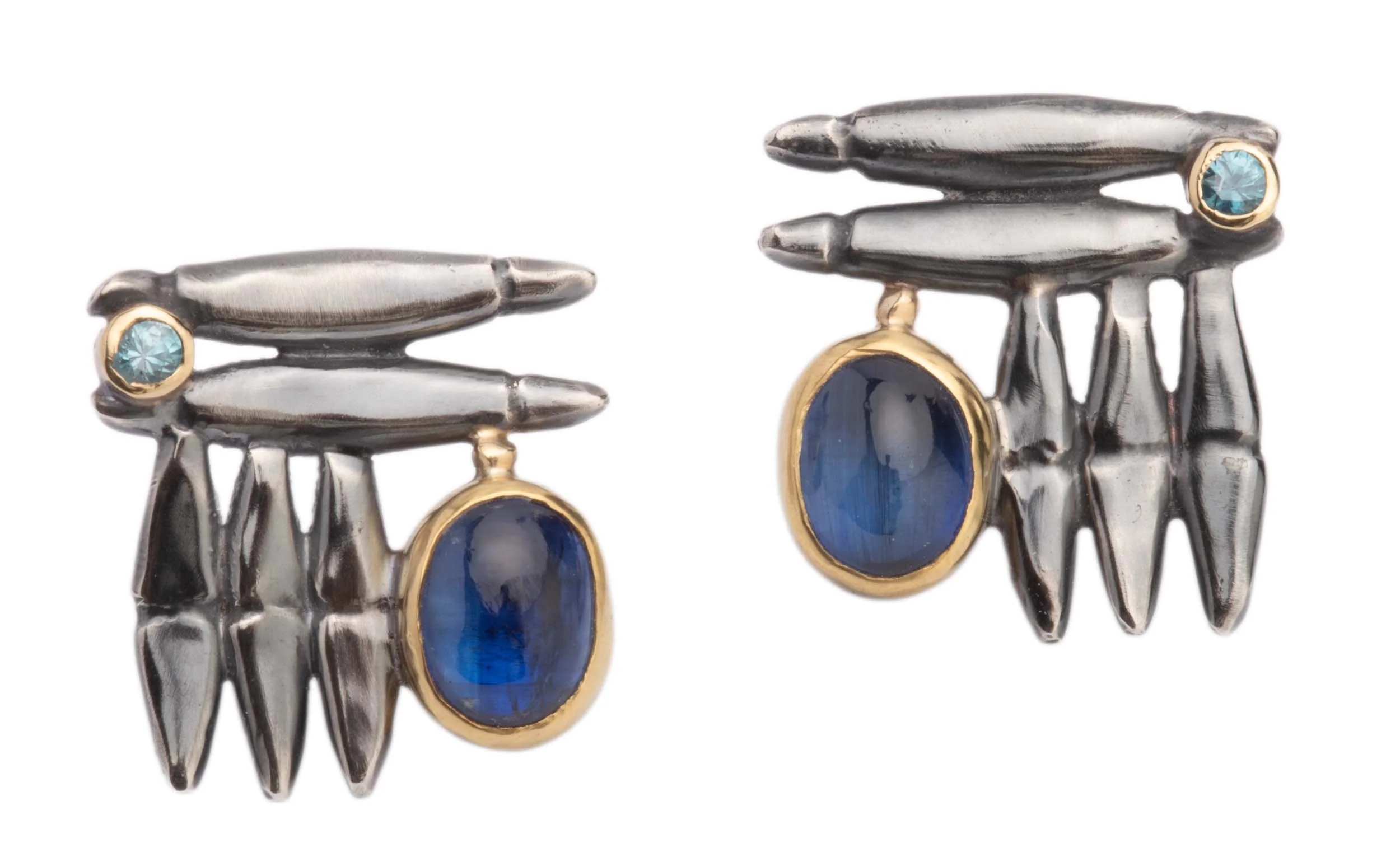 Monzo post earrings in Blue Hues: Kyanite, blue zircon.
