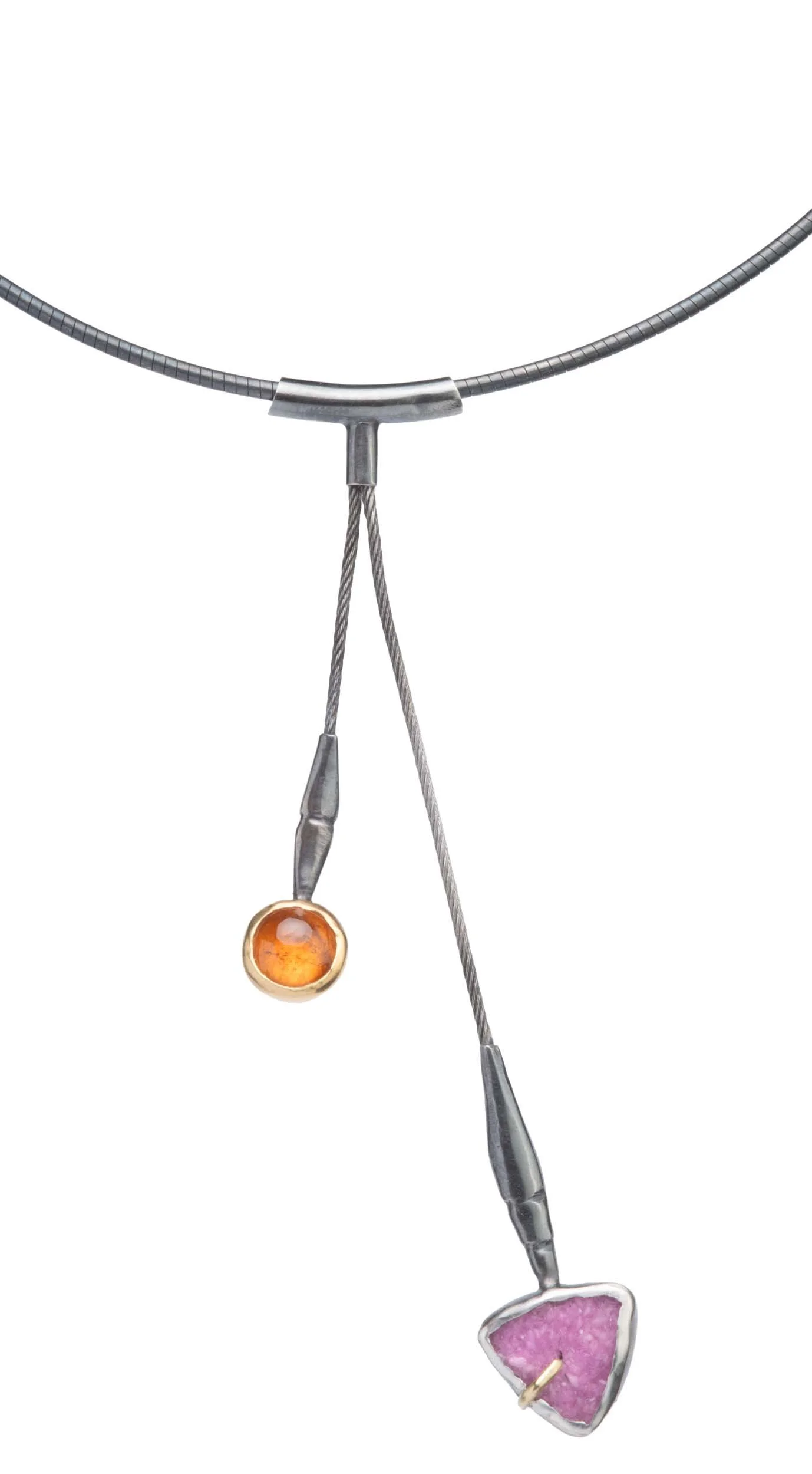 Branches necklace with cobaltocalcite (hot pink drusy) and spessartine (orange garnet).